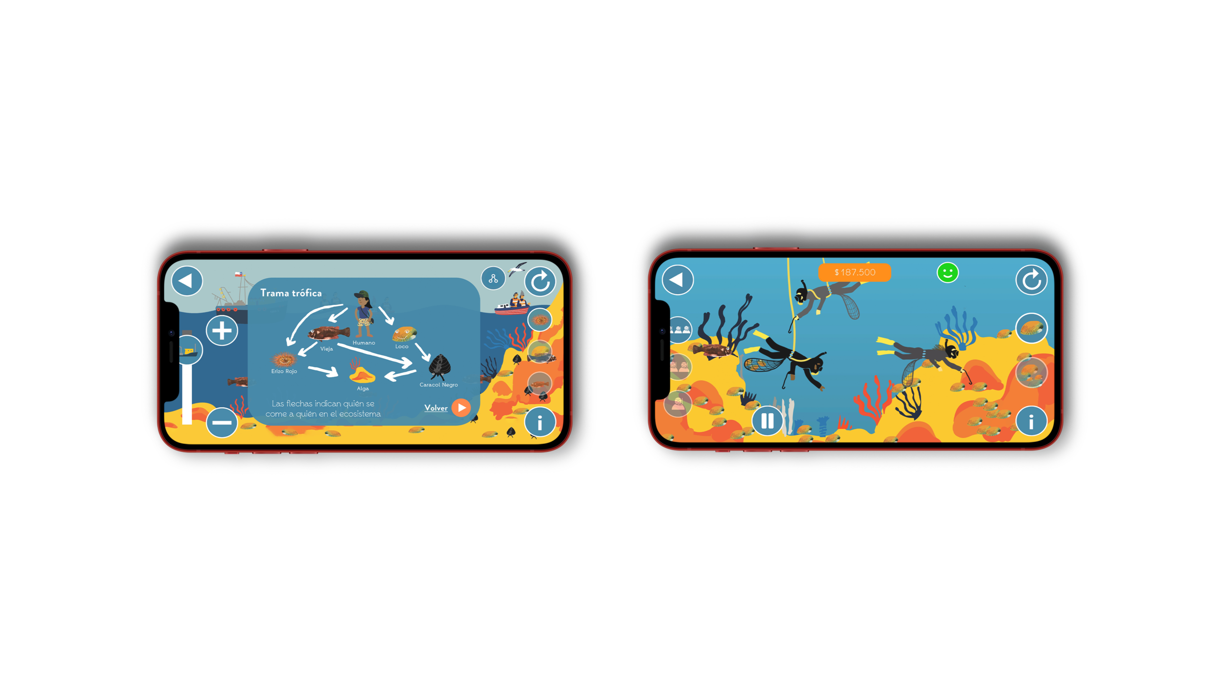 The Explora - Chile es Mar application was created by the Chile es Mar educational project from the Pontificia Universidad Católica de Chile, in collaboration with AUT Applab. Its objective is to educate children on the effects that humans have on the marine ecosystems of central Chile through the use of mixed reality technologies (immersive 360 videos and augmented reality) and interactive gamified exercises.I worked as lead graphic, UX/UI designer and illustrator on the project. Developing an identity, wireframe, icons and all graphic assets for the application. This work was done in collaboration with a team of marine scientists and educators in Chile, as well as a programming team based at the Applab at AUT.